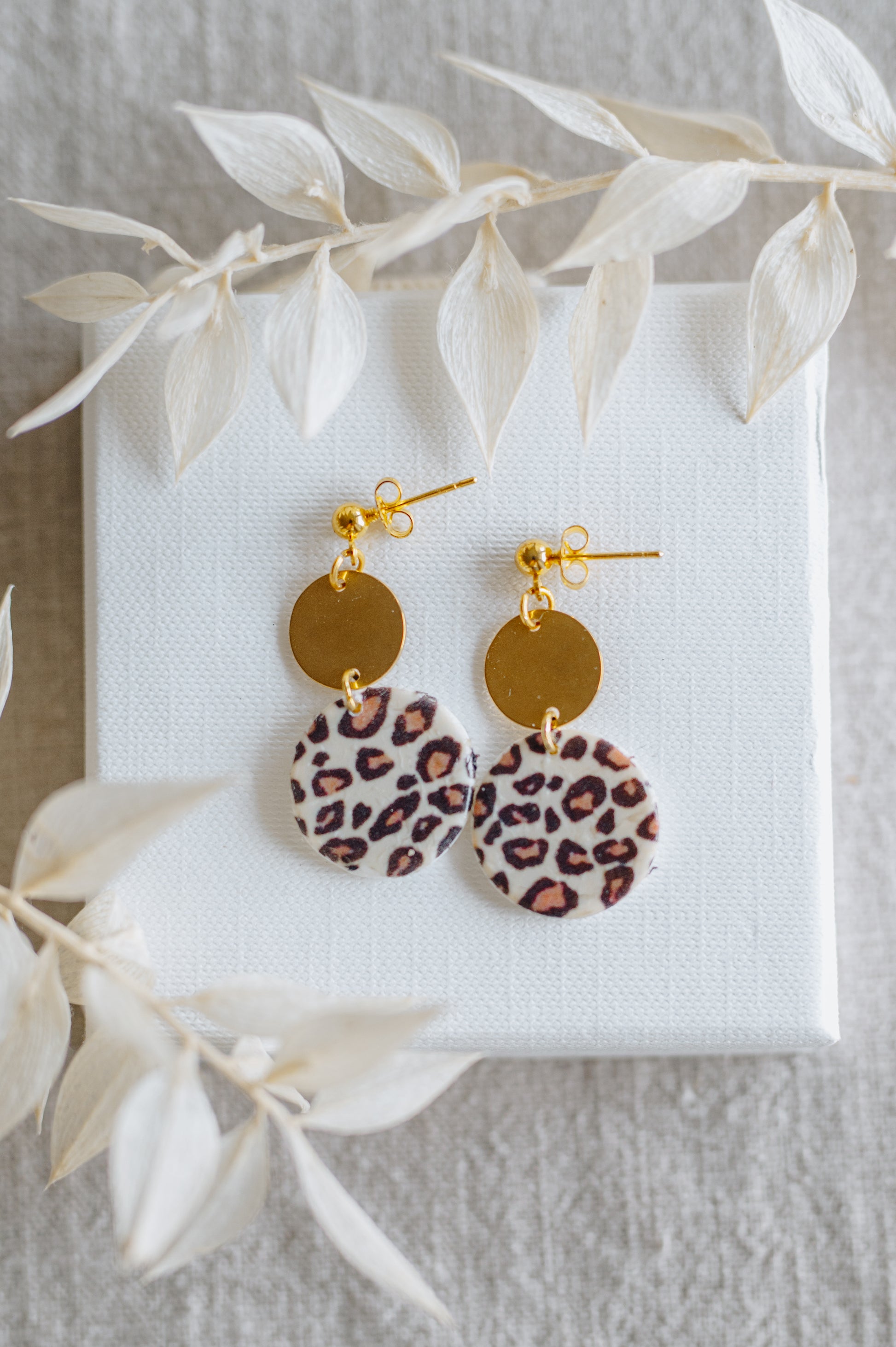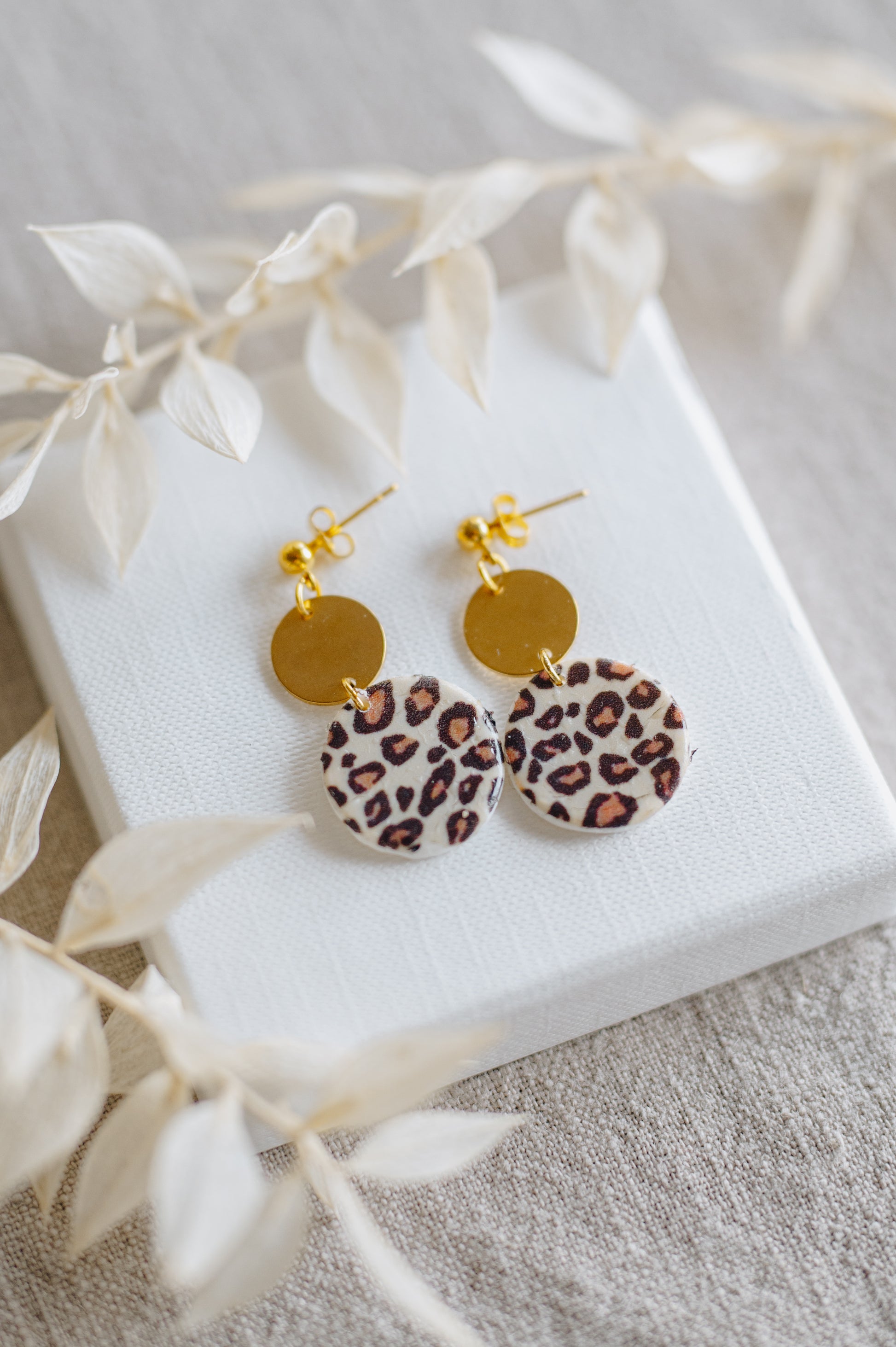 Erlebe die zeitlose Eleganz dieser außergewöhnlichen Schmuckstücke. Das kunstvoll gestaltete Leo-Muster verleiht den schlichten runden Ohrringen eine einzigartige Ausstrahlung. Gefertigt aus leichtem Polymer Clay, bieten sie nicht nur einen angenehmen Tragekomfort, sondern sind auch ein Blickfang für jeden Anlass.