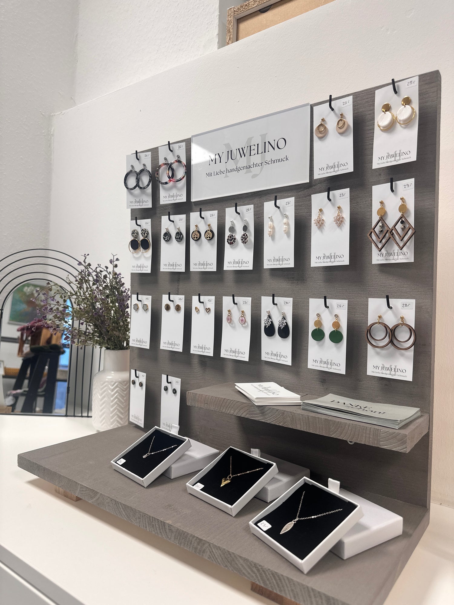 Du erhältst dein Schmucksortiment inklusive Aufsteller – bereit zum Präsentieren und Verkaufen.
