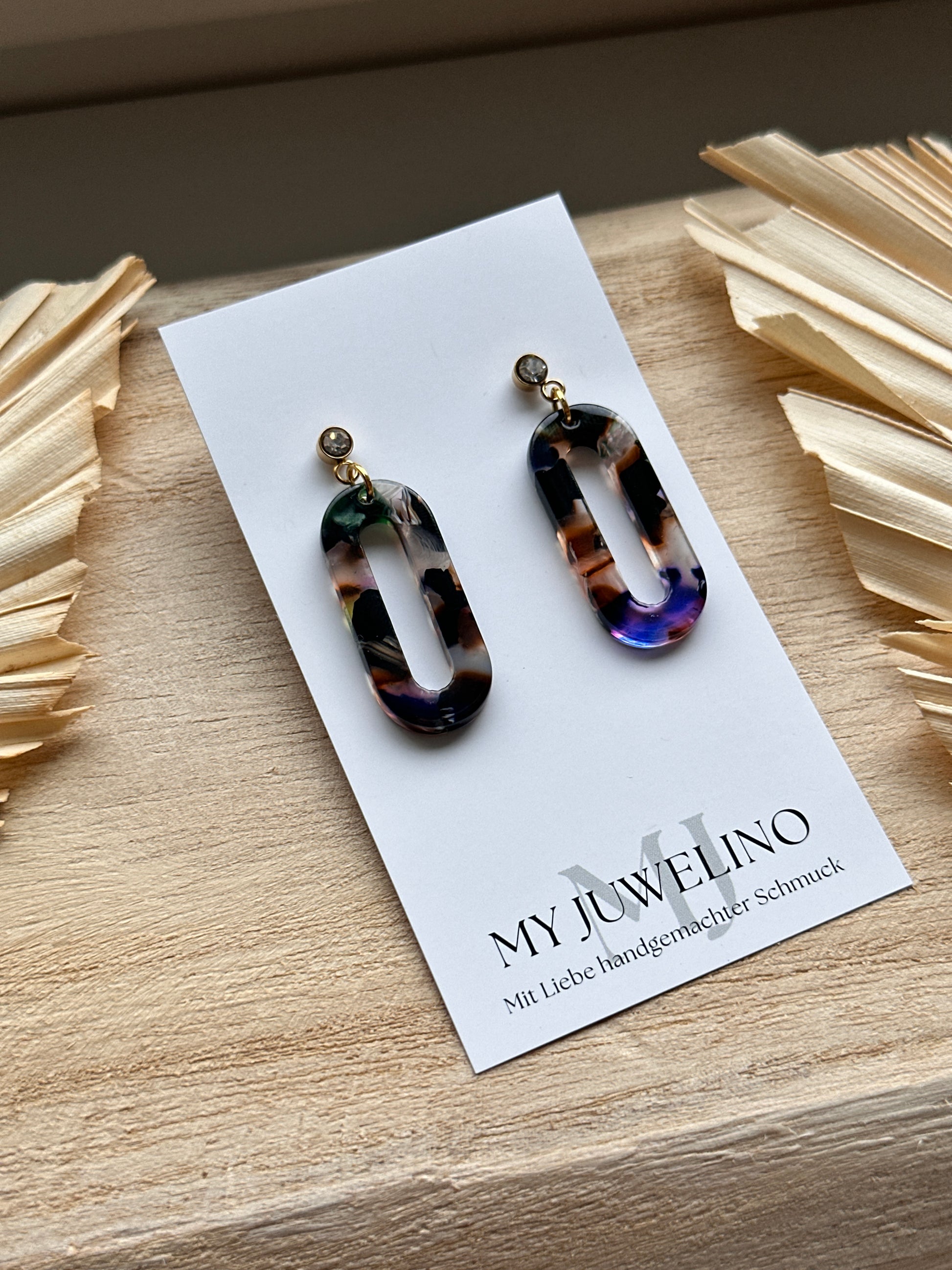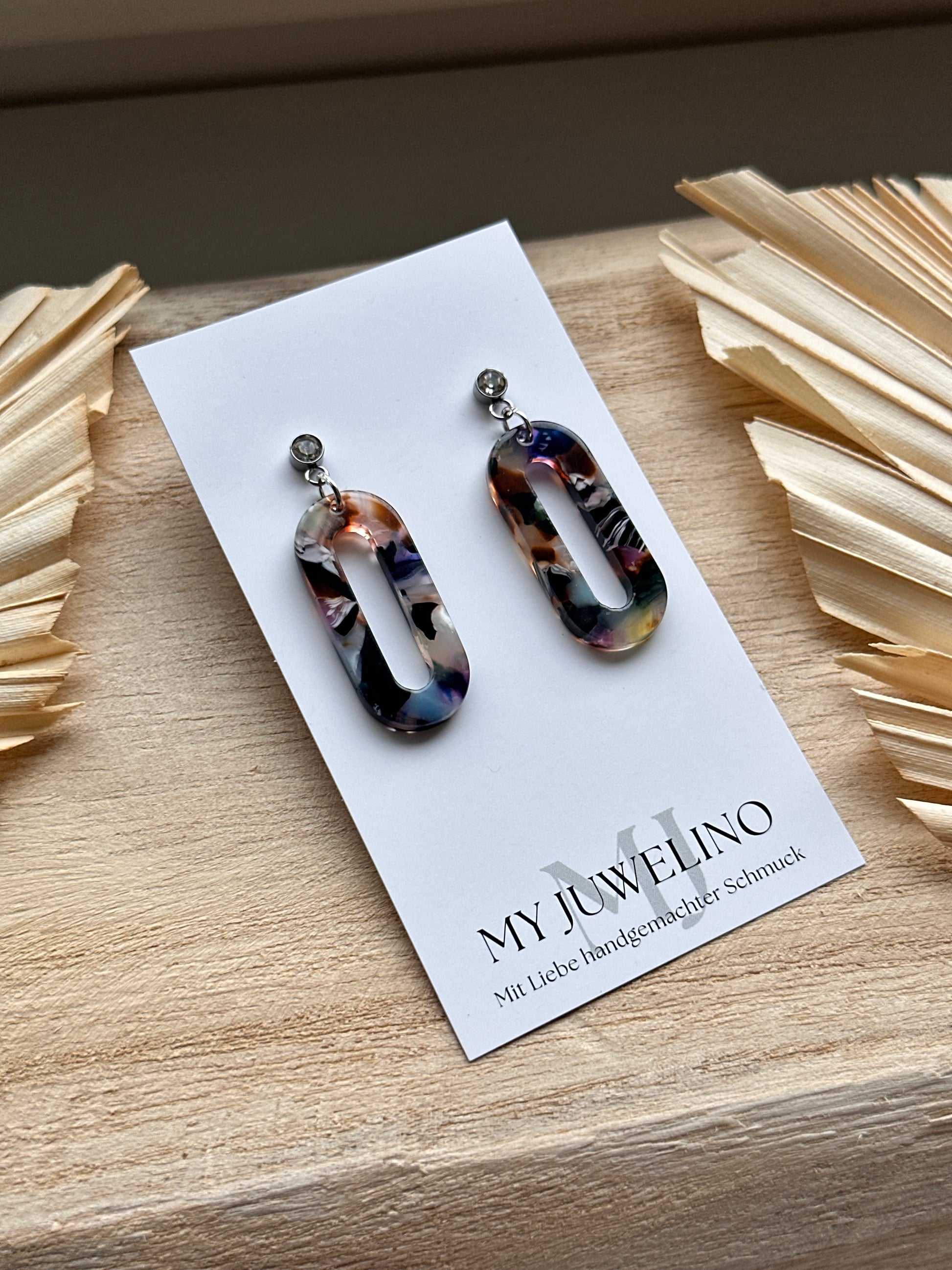 Einzigartige bunte Acetat Ohrringe für jedes Outfit, ein echter Blickfang aus einen nicht alltäglichen Material. Das Muster ist einzigartig und ein echtes Unikat, es wirkt sowohl Edel als auch Schlicht und passt zu jedem Outfit. Sie sind leicht und angenehm zu tragen, ideal für den ganzen Tag oder besondere Anlässe am Abend.