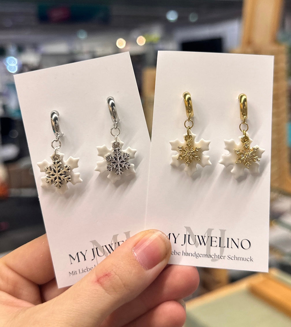 Diese Schneeflocken-Ohrringe wirken winterlich, schlicht und trotzdem besonders. Sie sind leicht, angenehm zu tragen und passen sowohl im Alltag als auch zu festlichen Outfits.