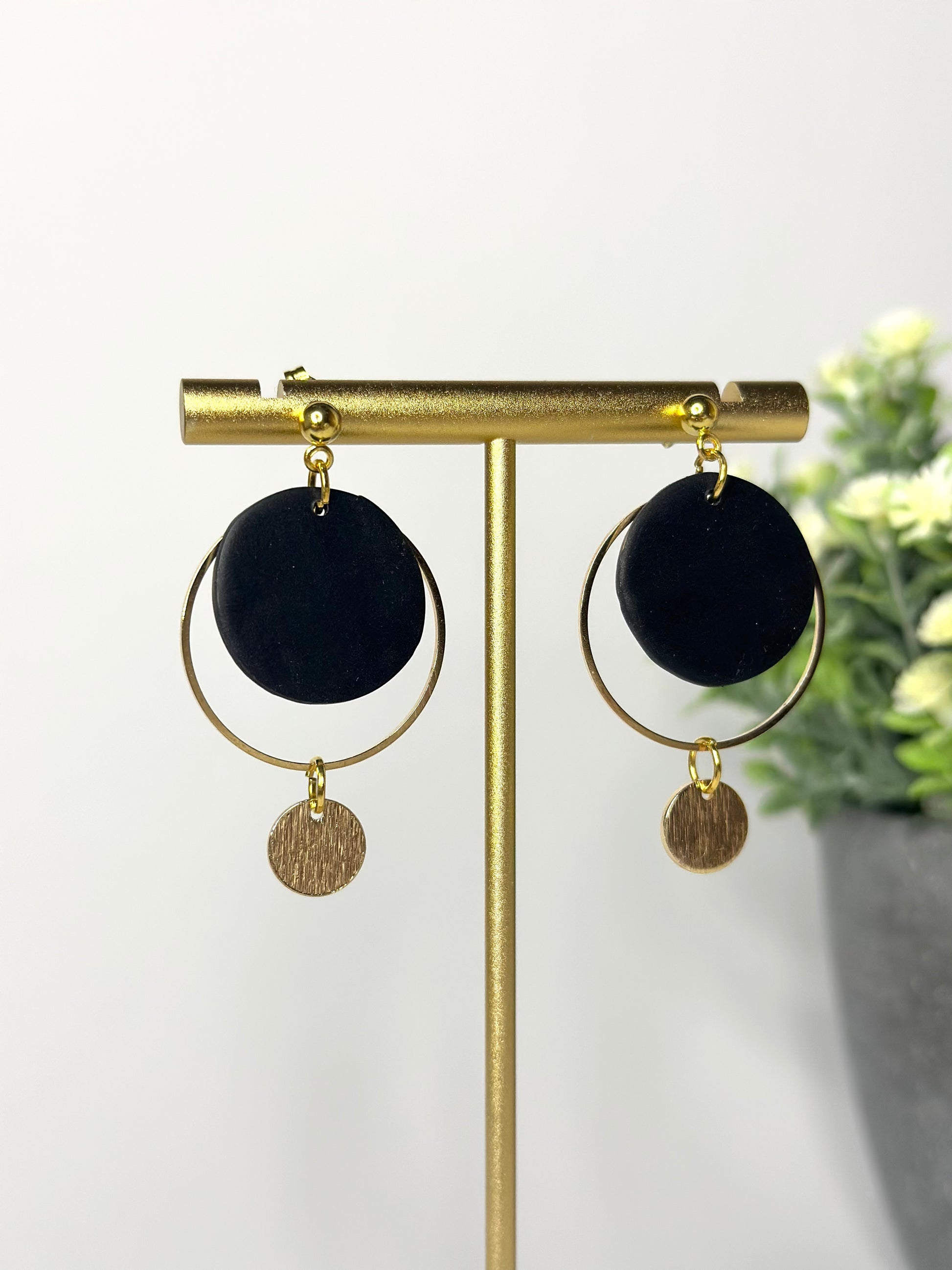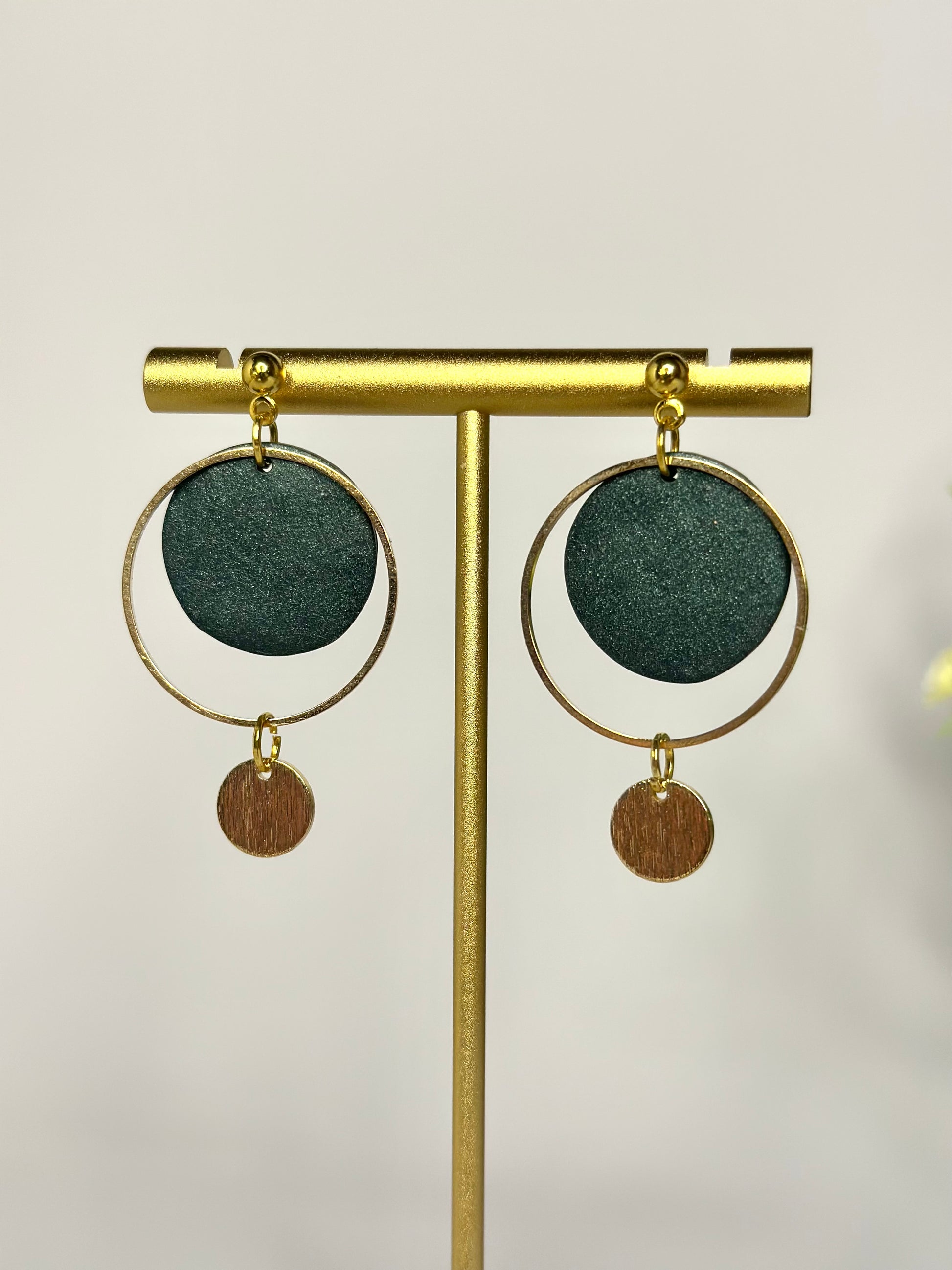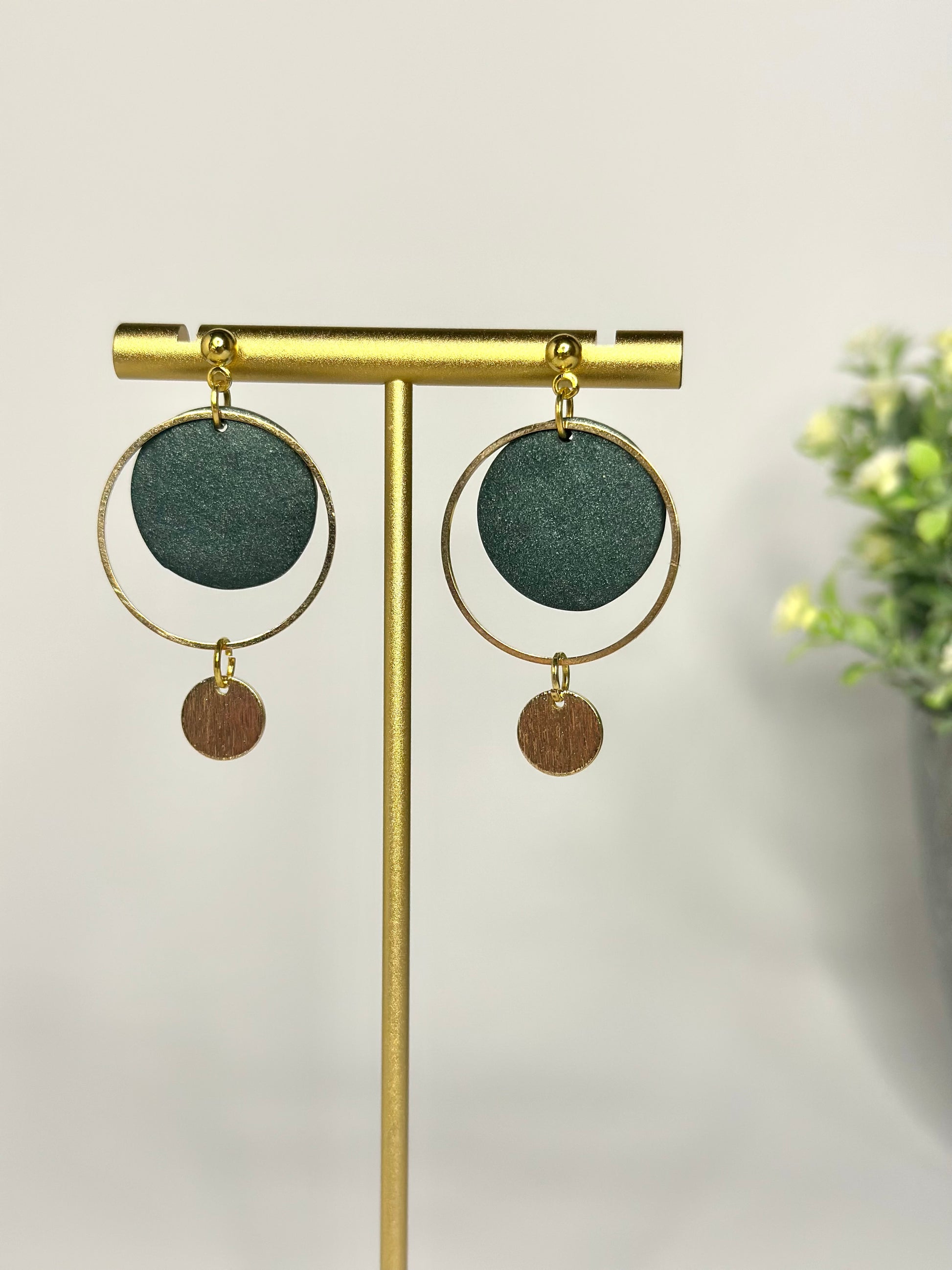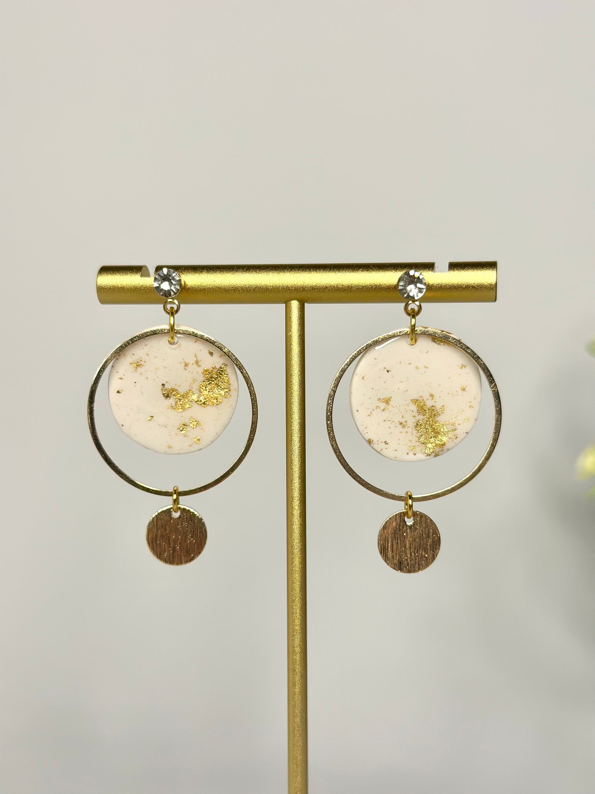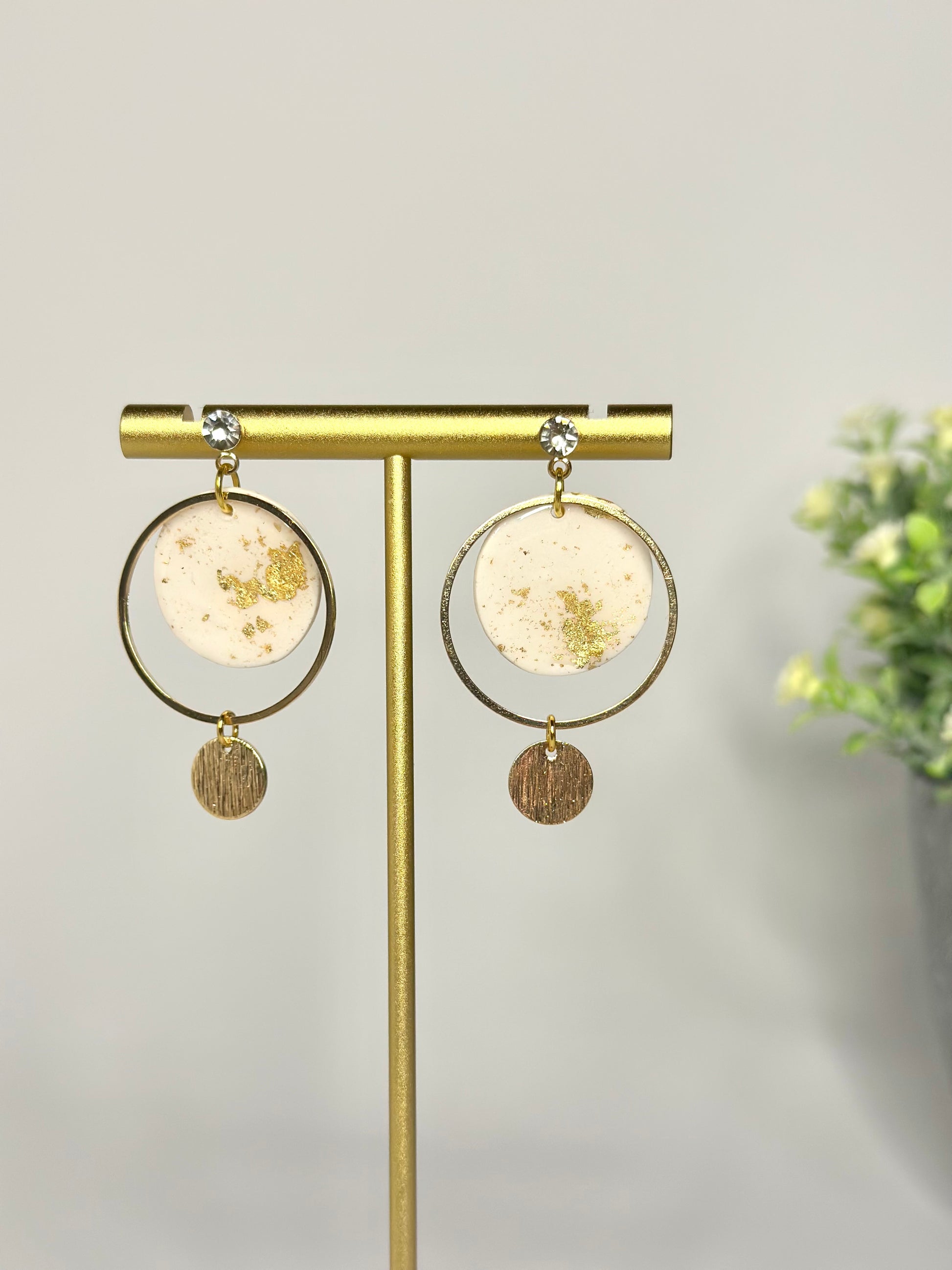 Ohrringe mit einzigartigen Goldelement. Diese ausgefallenen Ohrringe sind, etwas besonderes. Die Ohrringelemente sind handgefertigt aus Polymer Clay und sorgen somit für ein angenehmes Tragegefühl. Der goldene Ring und Plättchen verleihen den Ohrringen ihren eleganten Touch.